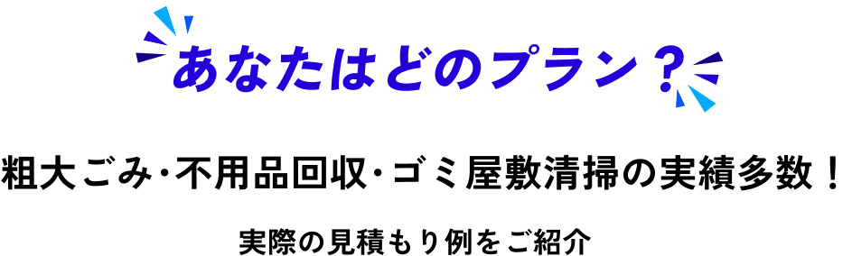 あなたはどのプラン?粗大ごみ・不用品回収・ゴミ屋敷清掃の実績多数!実際の見積もり例をご紹介