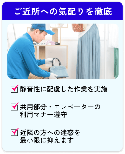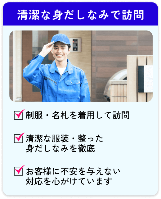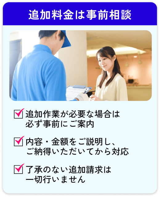 【当社が大切にしていること】 見積もり後に金額が変わらない / 不明点をその場でしっかり説明 / 無理な営業・強引な契約は一切なし
