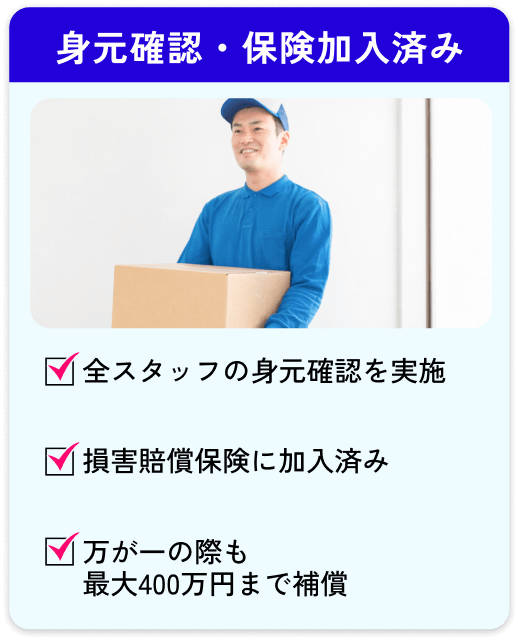 ご相談・お見積もり完全無料 / 最短15分で現場へ到着 / 柔軟な格安プラン設計 / 清潔な身なり丁寧な対応 / 最大400万円までの補償制度 / 24時間回収対応OK / 不用品買い取りサービス / 法律・コンプライアンス遵守